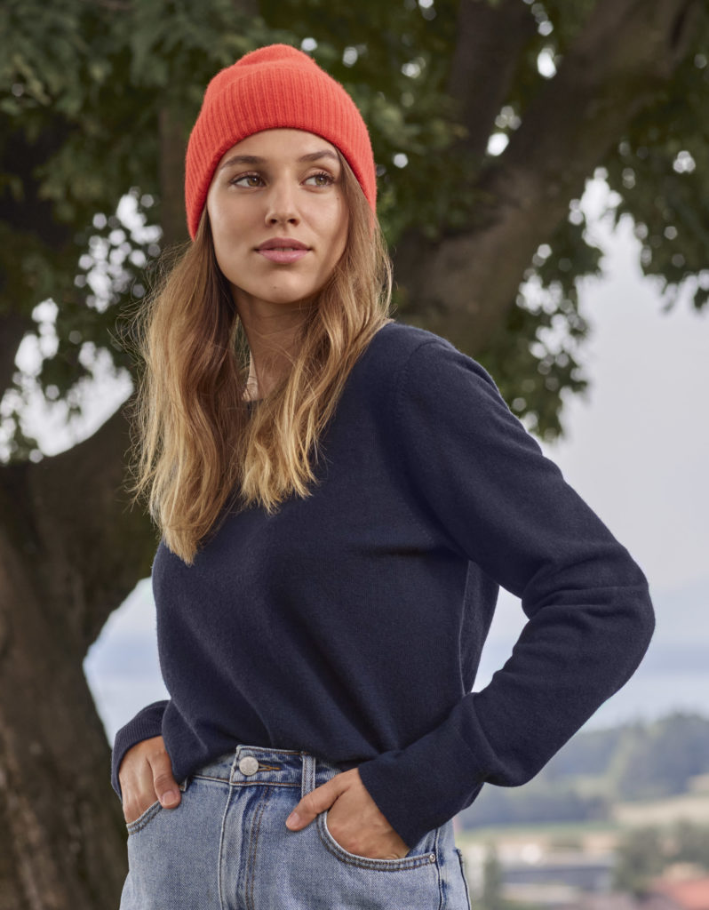 «Les it-pièces des nouvelles marques constituent les points forts d’une tenue grâce à leurs accents tendance. Nous combinons ces éléments forts avec des pièces casual des marques propres de Manor Woman. Ainsi, le manteau à carreaux actuellement disponible de la marque de mode Vila s’accorde parfaitement avec le doux pull en cashmere de Manor Woman, par exemple. Il s’agit d’une pièce tendance qui attire le regard sur une tenue agréable à porter. Des accessoires qui tiennent bien chaud durant les jours froids complètent chaque tenue d’automne. À ce propos, les pulls, bonnets et gants de Manor Woman sont fabriqués à partir de cashmere doux répondant à la norme Global Organic Textile Standard – un label de qualité indépendant qui répond à des critères environnementaux et sociaux complets tout au long de la chaîne de production.»