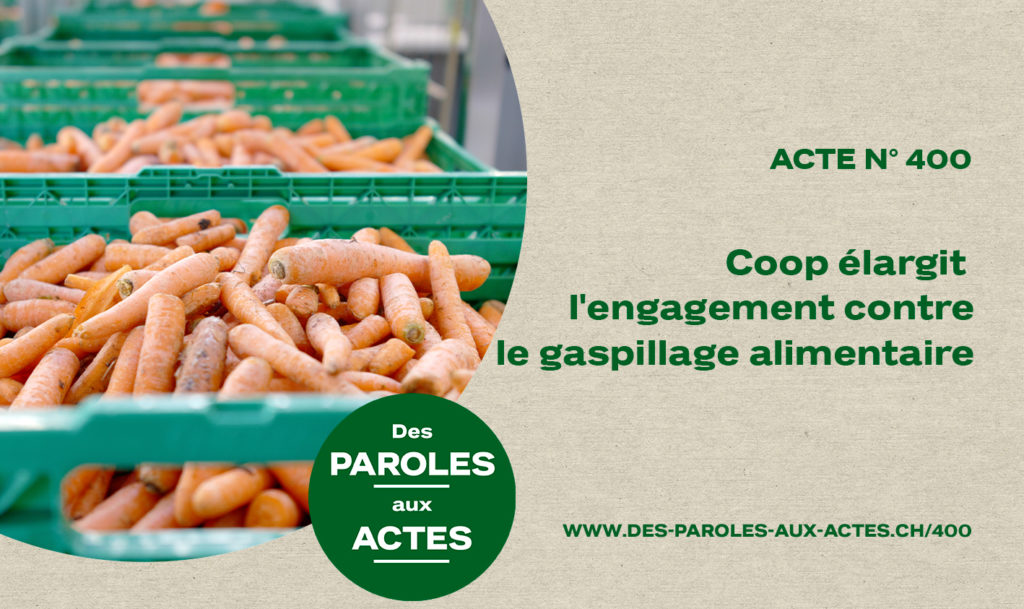 Le développement durable est profondément ancré dans la stratégie d’entreprise de Coop, pionnière dans ce domaine depuis plus de 30 ans. L’ensemble de ses engagements en la matière est résumé sous le mot d’ordre «Des paroles aux actes». Avec 400 actes au total, qui récapitulent toutes les mesures qu’elle a déjà prises, Coop témoigne de sa volonté d’agir en faveur des hommes, des animaux et de la nature.