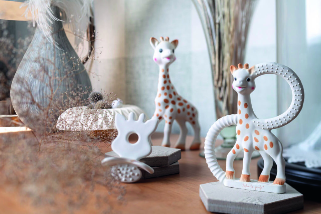 Ce jouet iconique naquit le 25 mai 1961… le jour de la sainte Sophie! Sa composition est à base de caoutchouc 100% naturel issu du latex de l’arbre hévéa. A ce jour, Sophie la girafe© est toujours fabriquée «artisanalement» puisqu’il faut plus de 14 opérations manuelles pour la réaliser! De par sa fabrication respectueuse de l’environnement, elle est aujourd’hui plus que jamais dans l’air du temps et promise à un avenir durable.