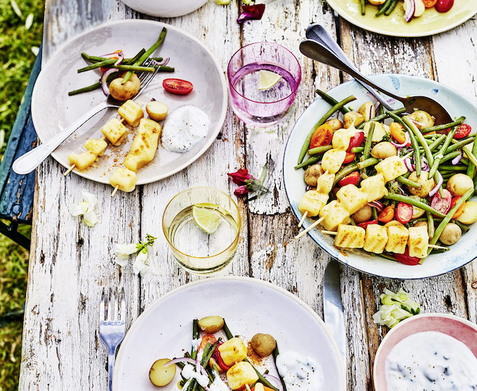 Salade de haricots et brochettes d’emmental au curry Ingrédients pour 6 personnes 500 g de…